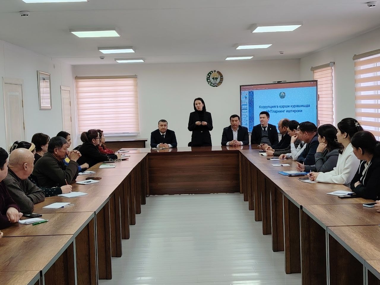 Taqdimot davomida mahalliy byudjetning sarflanishi va davlat dasturlarining ijrosi ustidan NNTlar ishtirokida samarali nazorat o‘rnatish, aholi o‘rtasida korrupsiyaga nisbatan "murosasiz munosabat" madaniyatini shakllantirish bo‘yicha targ‘ibot tadbirlari, inson omilini kamaytirish orqali korrupsion xavf-xatarlarni minimallashtirishga qaratilgan ijtimoiy tashabbuslar haqida to'xtalib o'tildi.